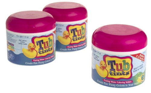 Tub Tints offers fizzy bath fun in three primary colors. Sprinkle 8 to 10 of the red, blue, or yellow tablets into bath water for a wild new bathtime experience. Kids will especially love to create their own colors by using different combinations of tablets. Tub Tints is safe, nontoxic, and biodegradable. It contains no fragrance or soap additives, and was tested by an independent laboratory and found to be nonirritating to skin, eyes, and urinary tract. Each container has 200 tablets--enough for approximately 20 baths. Adult supervision is recommended. --Peggy Etra