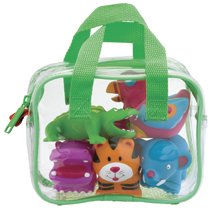 Each set of 5 soft squirters is packed in a zippered PVC bag with handles. Perfectly sized for little hands. All squirters are Phthalate-free. Ages 6 mos. +