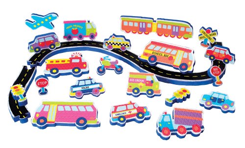 Build a busy roadway in your bath! Comes with 6 sections of interconnecting roadway, cars, trucks, buses, motorcycles, traffic lights, signs and more! 27 pieces. Beep, Beep, I'm ready for my bath! Ages: 3+ Manufacturer: Alex