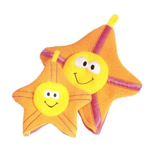 Lamaze Starfish Bath Mitts: This product includes loads of fun! Make bathtime special with Mama and Baby Bath Mitts. Two bath mitts come together, one sized for mom's hand...the other for baby's. The adorable characters make it un for mom and baby to wash and play pretend. Each mitt is made out of a fast-drying terry cloth and has an attached loop to hang dry