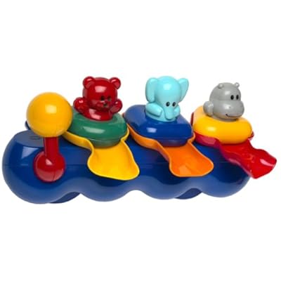 Make bath time a blast with this set of playful animals and cups that slide and splash down into the tub with the pull of a lever. Each of the 3 animals rides in a floating raft with a matching cup that fits over the animal and has a unique cut-out on the top for water to flow through. The slides are on a plastic base that attaches to the tub wall with 2 suction cups. The Tolo Toys Animal Water Slide will make bath time play a splash!