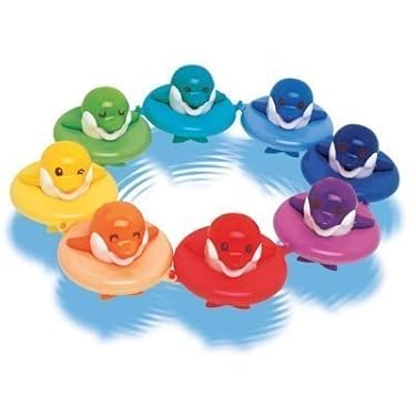 Create pretty music in the tub. Give each dolphin a tap on the head to hear a different note in a 8-note scale. Hook the inner tubes together or let the dolphins float freely. This dolphin group plays as many meiodies as a child can compose.