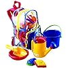 A total sand play set. Five pieces plus durable plastic carrying case. Perfect for a trip to the beach with a couple of children. Includes Lg. Sand Pail, Lg. Sieve, Lg. Sand Scoop, 2 Sand Forms